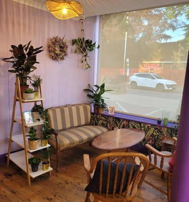Where flowers meet coffee in cozy harmony.